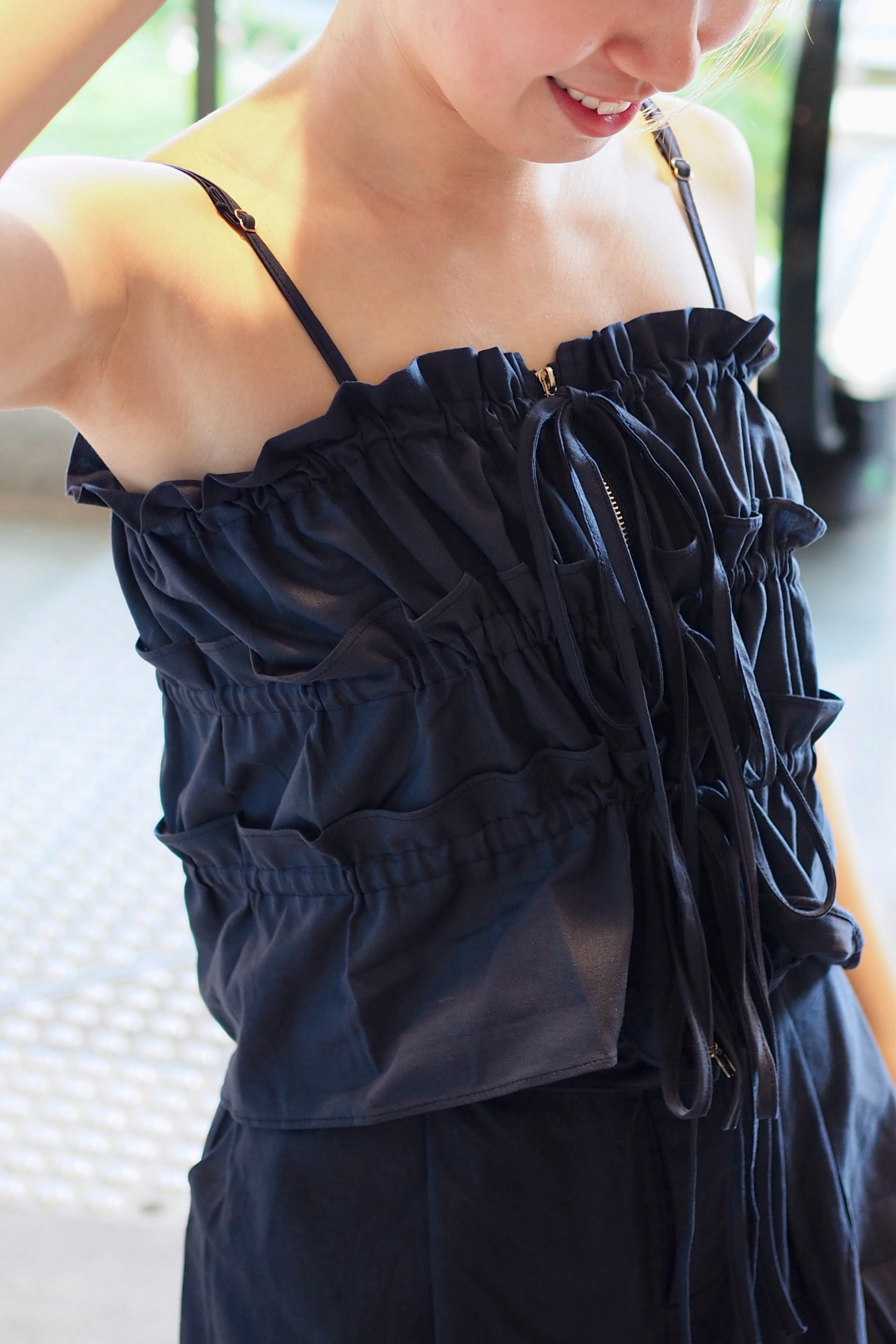 上身一件蝴蝶結吊帶背心🎀 (自行綁帶調教鬆緊)