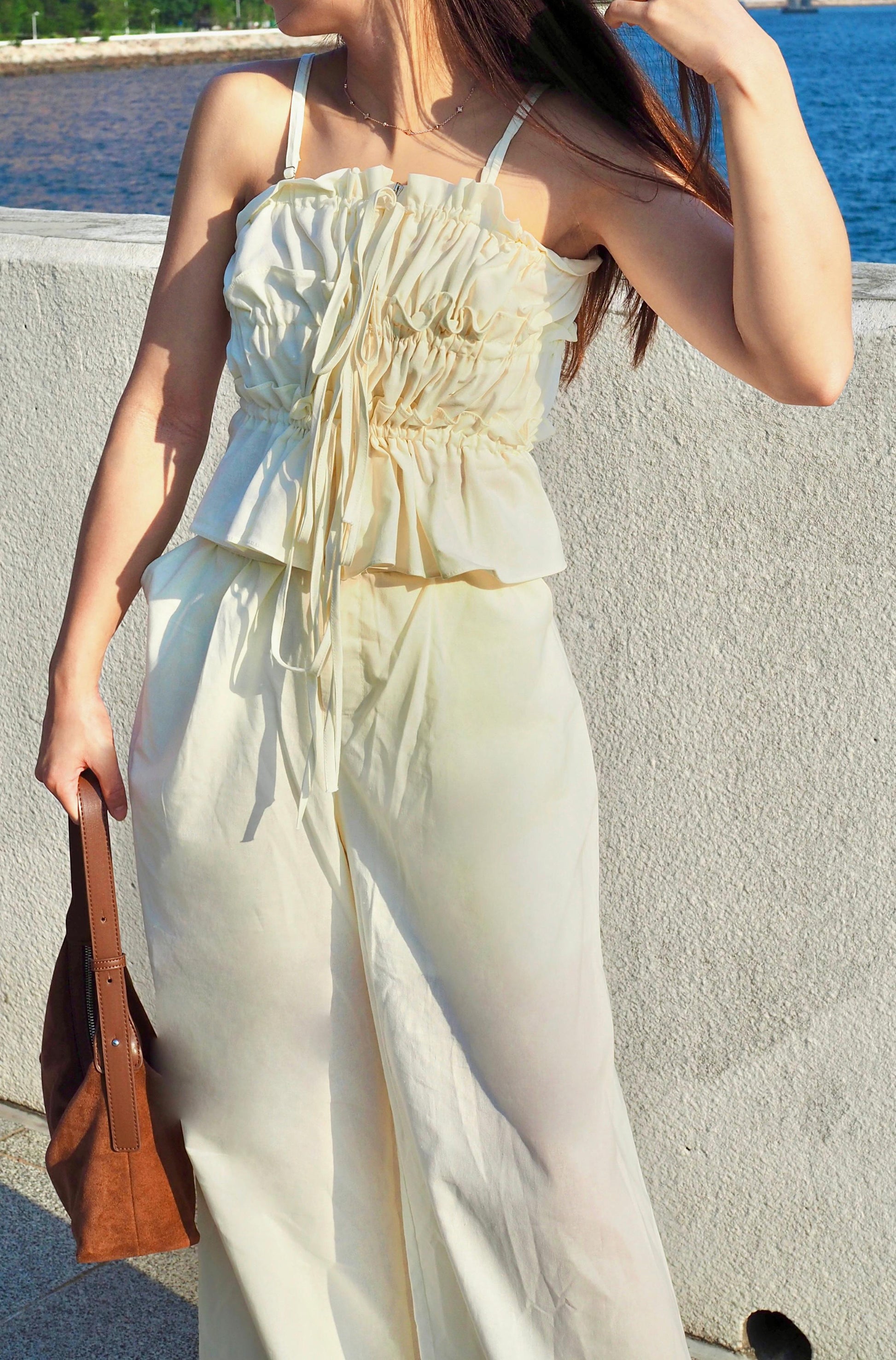 / 度假風蝴蝶結褶皺套裝 /